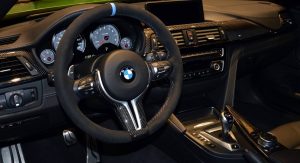 Another thing that’s great about it is the fact that the interior is all about “business”. Of course, we’re talking about the business of going fast, without any of the unnecessary distractions one might find in a custom BMW M4 from time to time, like brightly colored inserts or stitching.