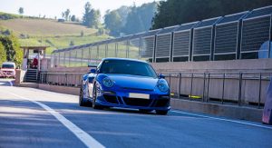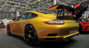This right here is a naturally aspirated machine, that features a tuned chassis, less weight, a wide-body kit, and an integrated roll cage. Flat out, you’ll be doing 322 km/h (200 mph) in this car and that’s faster than the 560 PS production 911 Turbo S.