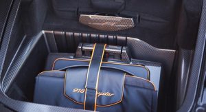 The seller says that the model is signed by Porsche Exclusive and is equipped with the weight-saving and aerodynamics Weissach Package. This includes carbon fiber fins on the rear bumper, magnesium wheels and other features. On top of that, a special order luggage from Porsche Exclusive, in carbon and Gulf Blue and Orange, is also being offered.