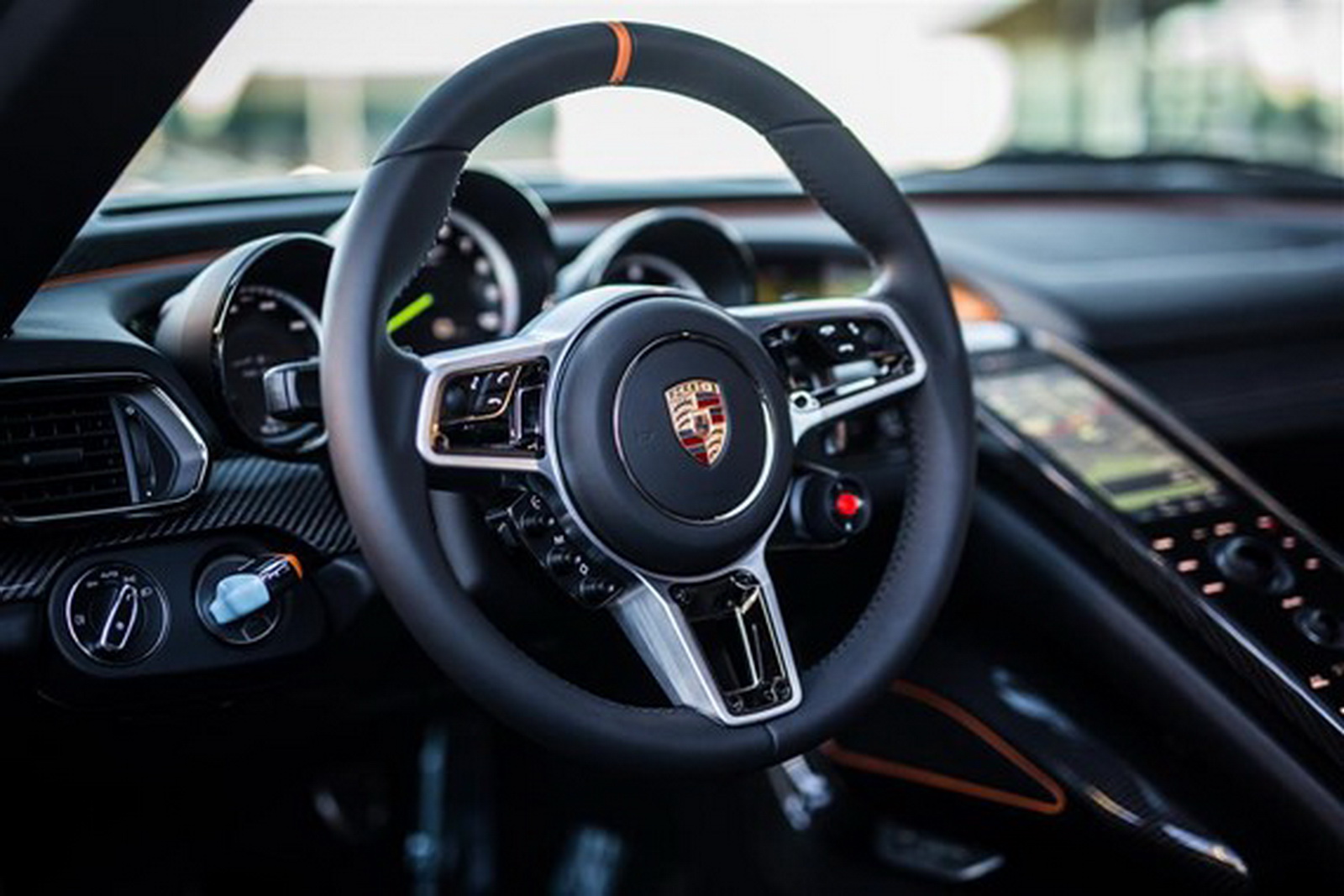 The seller says that the model is signed by Porsche Exclusive and is equipped with the weight-saving and aerodynamics Weissach Package. This includes carbon fiber fins on the rear bumper, magnesium wheels and other features. On top of that, a special order luggage from Porsche Exclusive, in carbon and Gulf Blue and Orange, is also being offered.
