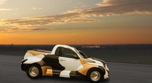 This odd-looking automobile started life as a regular PT Cruiser, but its current owner decided a hot-rod pick-up inspired appearance suits the car best, given its retro-styled look in the first place.