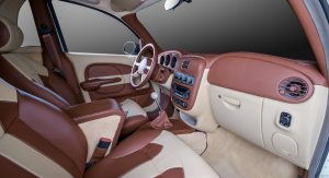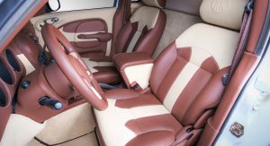 As you can see from the pictures, all the plastic elements were covered in leather, and the attention to detail is quite commendable. Besides the seats, the dashboard was adorned in hide, and even the doors didn’t escape the full-leather trim treatment. To top it off, a bespoke central console was produced to complement the vehicle’s overall custom design.