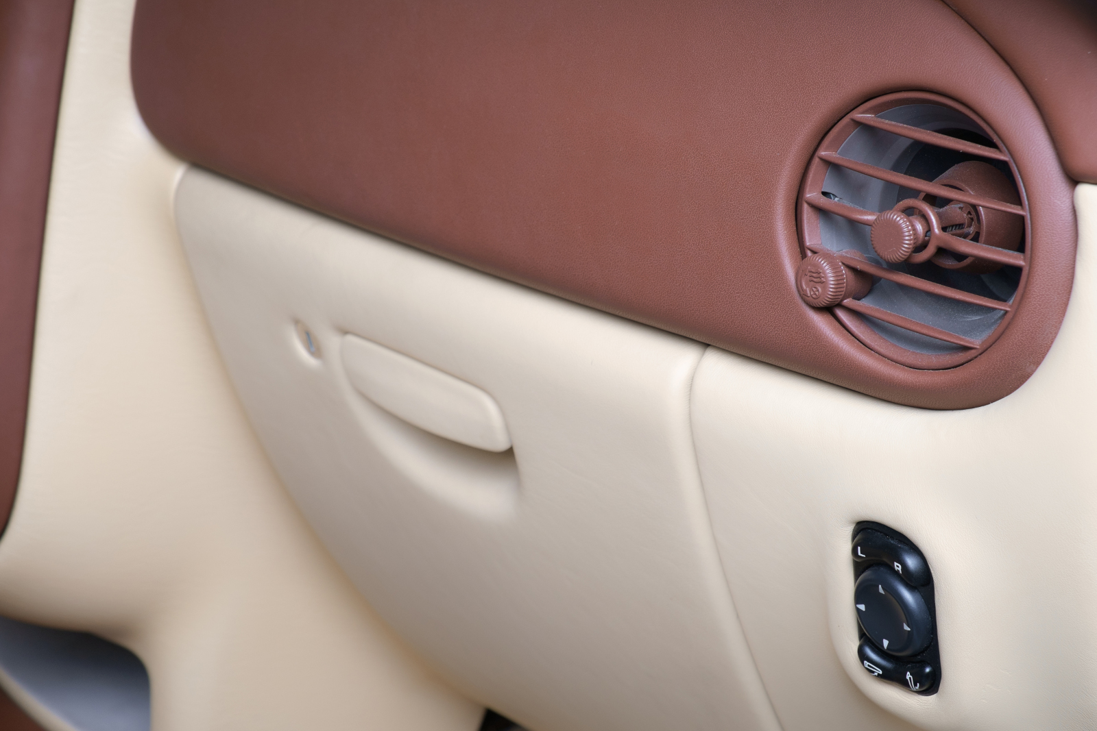 As you can see from the pictures, all the plastic elements were covered in leather, and the attention to detail is quite commendable. Besides the seats, the dashboard was adorned in hide, and even the doors didn’t escape the full-leather trim treatment. To top it off, a bespoke central console was produced to complement the vehicle’s overall custom design.