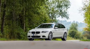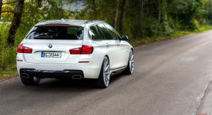Since we mentioned the 3-Series Touring, we saw one a few months ago that rather resembles this 5-Series right here in the sense that it was also white, looked sporty and was wearing Vossen wheels, except that those were VFS1 series and in this case we’re looking at a set of 22″ CVT series rims.