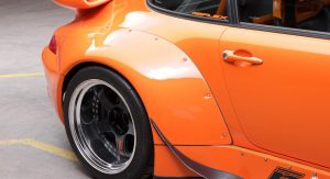 Other custom parts of this 911 include the SSR Professor wheels, said to have cost $6500 as well as the large brakes from the 993 Turbo and complete with orange calipers. Additionally, a coilover suspension system has been installed.