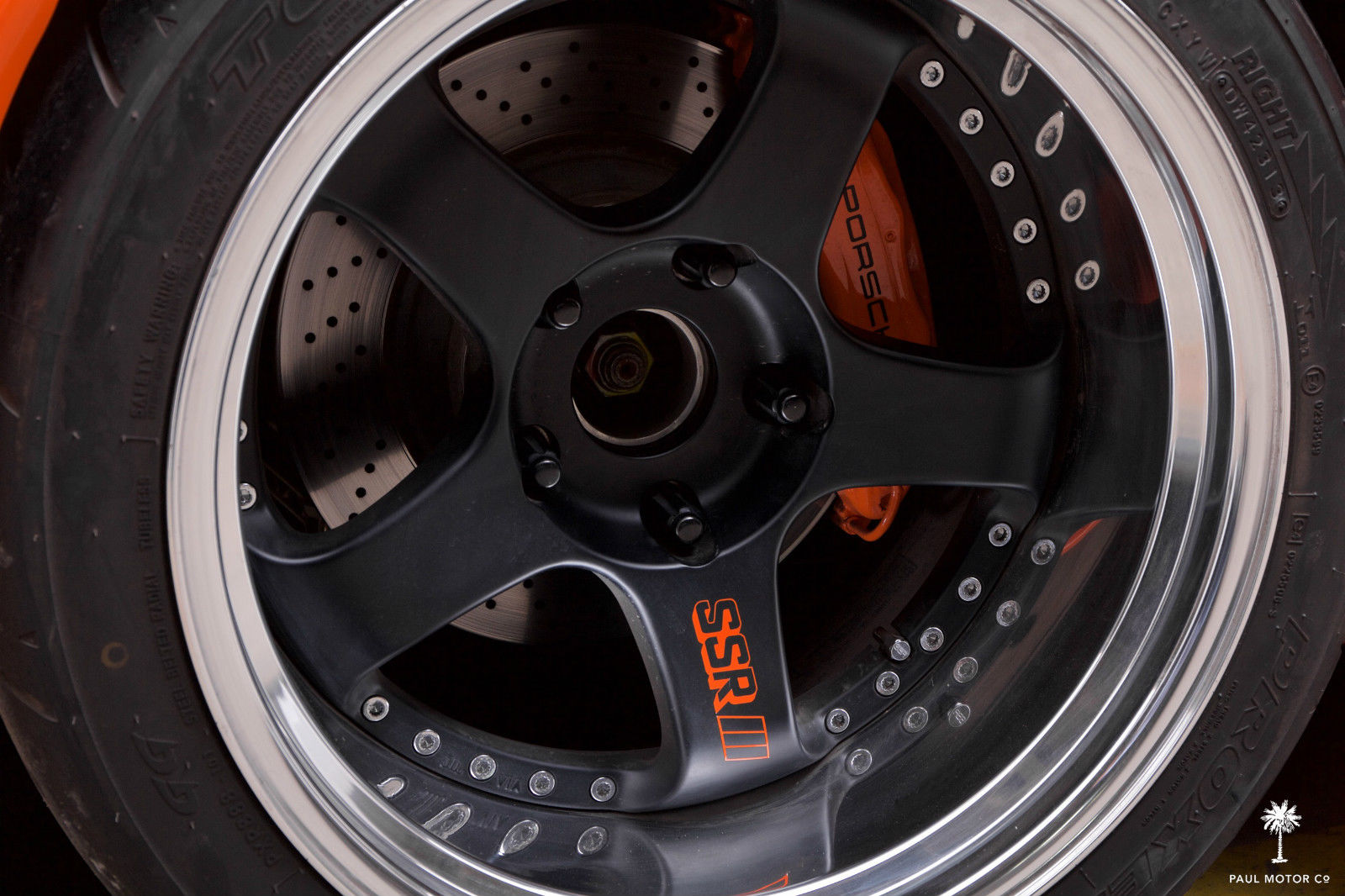 Other custom parts of this 911 include the SSR Professor wheels, said to have cost $6500 as well as the large brakes from the 993 Turbo and complete with orange calipers. Additionally, a coilover suspension system has been installed.