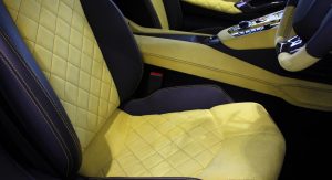 Meanwhile, the interior is just as bright as the outside with yellow leather and alcantara on the dashboard, steering wheel, centre console and the seats.