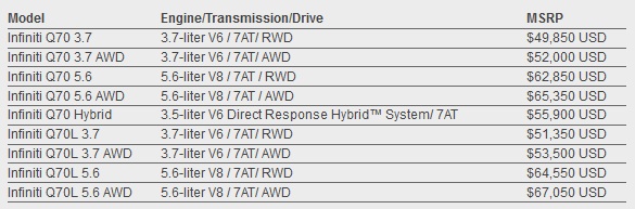 Infiniti has just announced the suggested retail price for the 2016 Q70 lineup in the US.