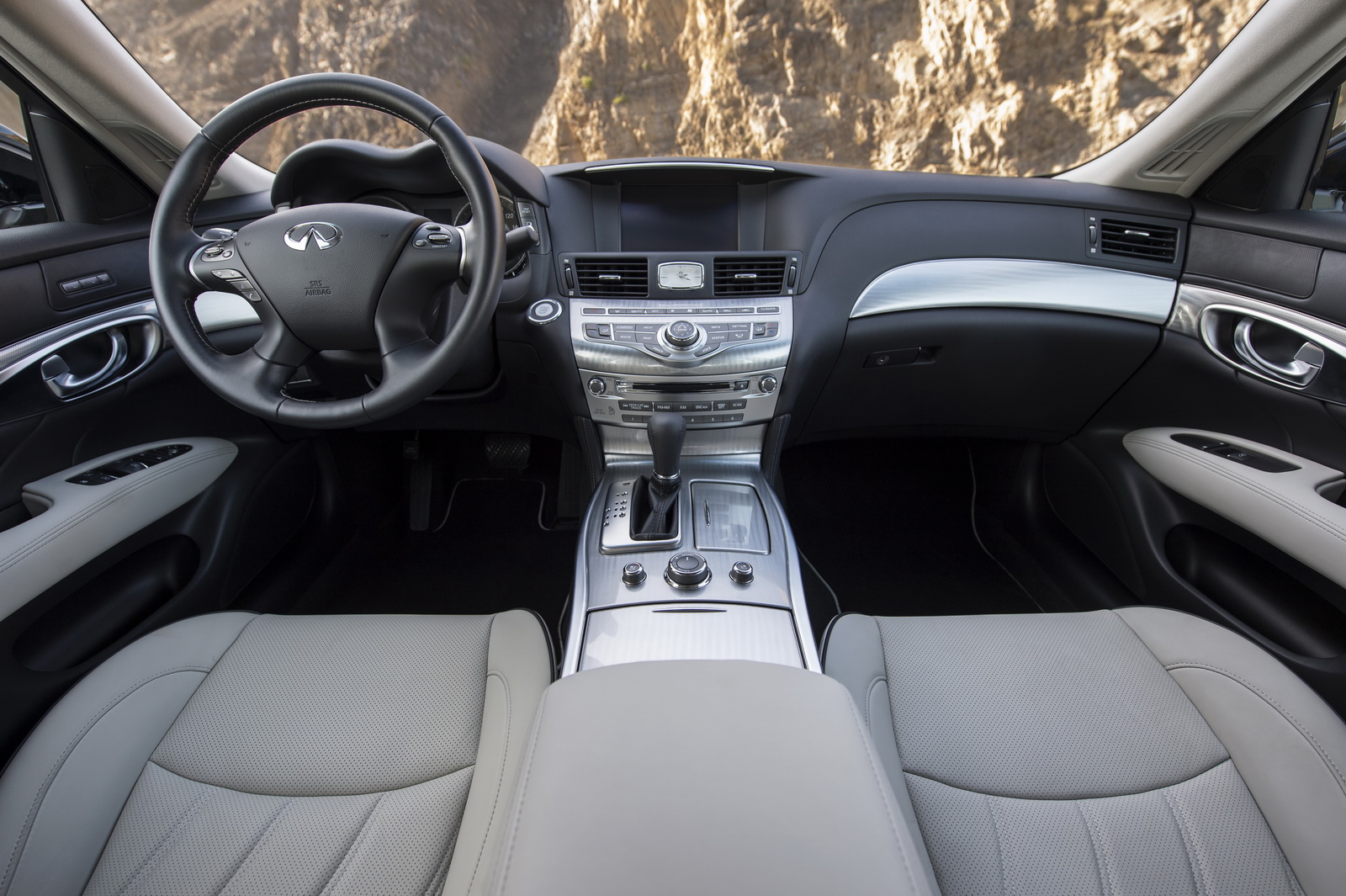 Inside, the vehicle is offered with a choice of two exclusive semi-aniline leather colors, Stone and Graphite, suede-like headliner, contrast seat piping, illuminated kick plates, exclusive laser-etched aluminum trim, unique floor mats and aluminum badging. The Q70 premium Select is offered at $3,300 over the standard Q70 3.7 and Q70 5.6 RWD and QWD models.