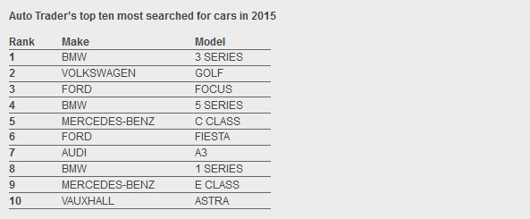 The fact that the Golf took 2nd place was no surprise, nor was the Focus coming in at 3rd. But to have the 5-Series and the C-Class respectively as the 4th and 5th most searched for cars in 2015, ahead of the Fiesta (6th) and the Vauxhall Astra (10th), speaks volumes about how people tend to prefer premium products.