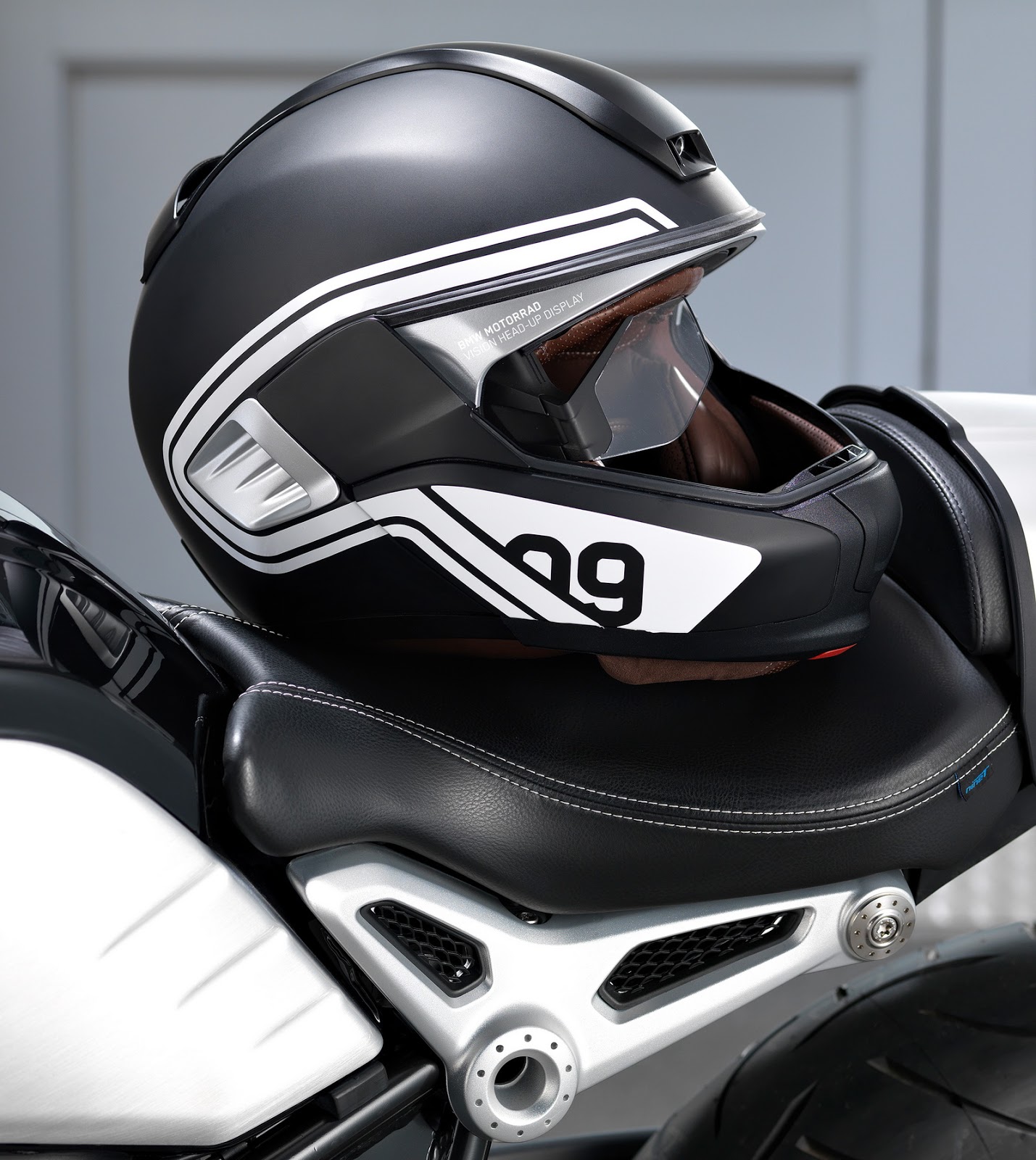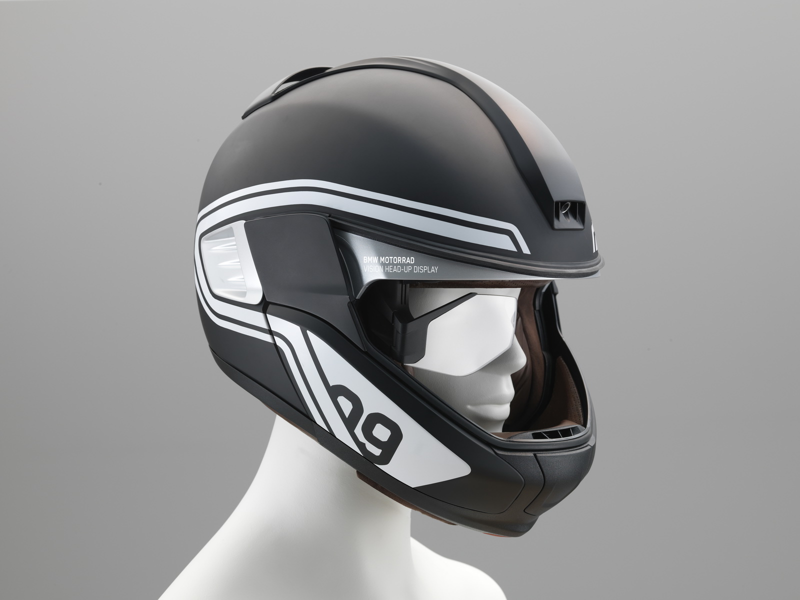 The head-up display helmet prevents the rider getting in a dangerous situation while glancing at the instrument cluster at high speed, canceling the brief second of distraction. Of course, the helmet is capable of providing a wide array of information projecting from necessary or desirable traffic or vehicle data directly into the rider’s field of view. All displays are freely programmable, as the unit is fitted with an integrated mini-computer and loudspeakers, is controlled from the left-hand handlebar fittings using the BMW Motorrad multicontroller.
