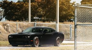 So how about this black Challenger SRT Hellcat with 20″ matte bronze ADV.1 wheels? It’s even wearing Nitto drag-spec radials to complement the “bad boy” look. The wheel design is pretty classic (Track Spec CS rims), which means that it matches up perfectly with the Challenger’s shape that harks back to the original icon.