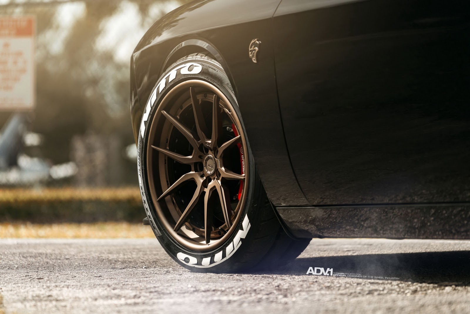 So how about this black Challenger SRT Hellcat with 20″ matte bronze ADV.1 wheels? It’s even wearing Nitto drag-spec radials to complement the “bad boy” look. The wheel design is pretty classic (Track Spec CS rims), which means that it matches up perfectly with the Challenger’s shape that harks back to the original icon.