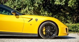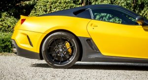 The first of the four is painted yellow and is adorned with a black roof, carbon fiber side skirts and black wheels and has covered 6,600 miles. That will be €850,000 for you, sir, thank you very much. There is also a second yellow car for sale at €825,000, with 300 miles more on the clock. The least expensive (you can’t say “cheapest” now, really…) of the lot is a gloss black example with a €750,000 asking price.