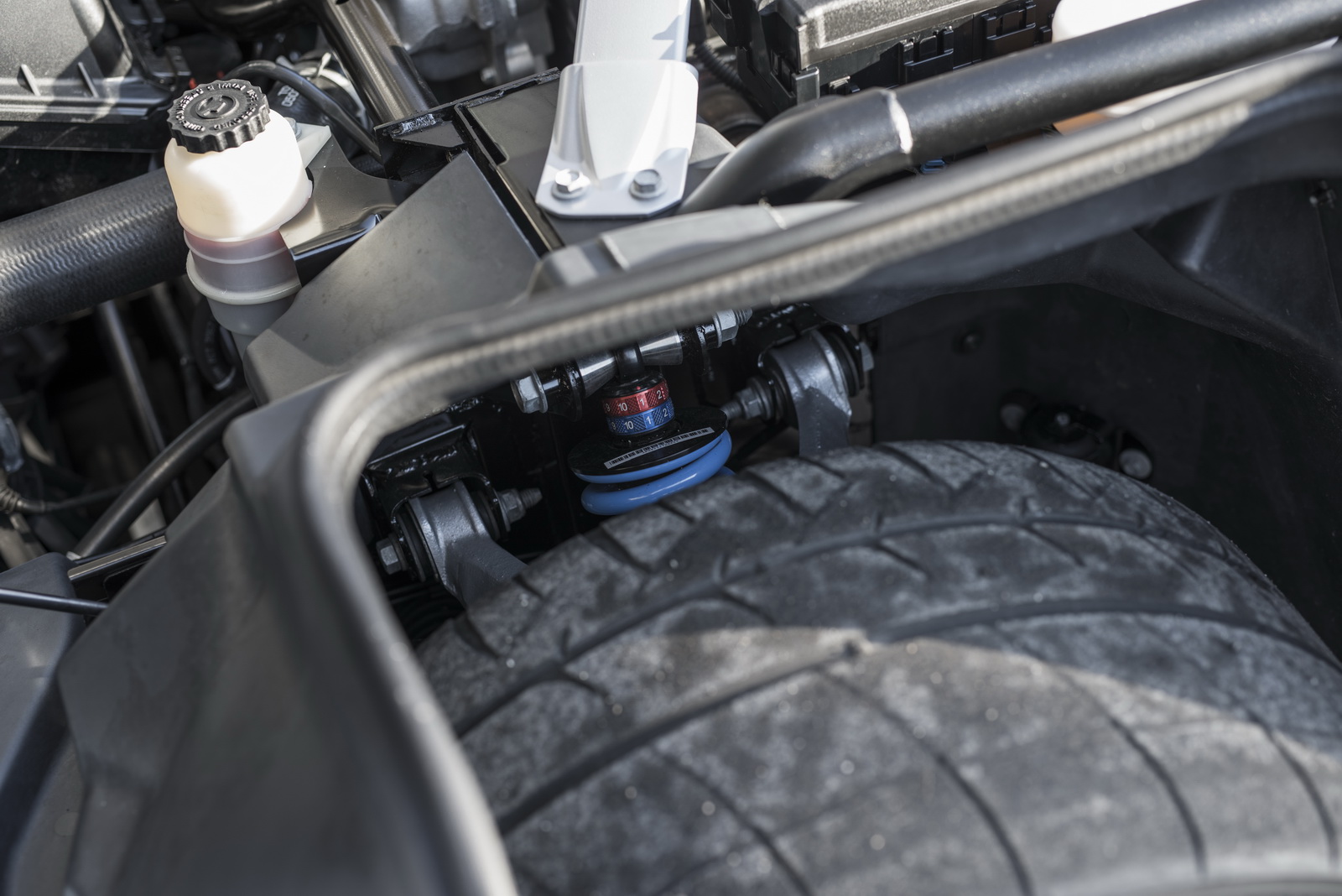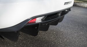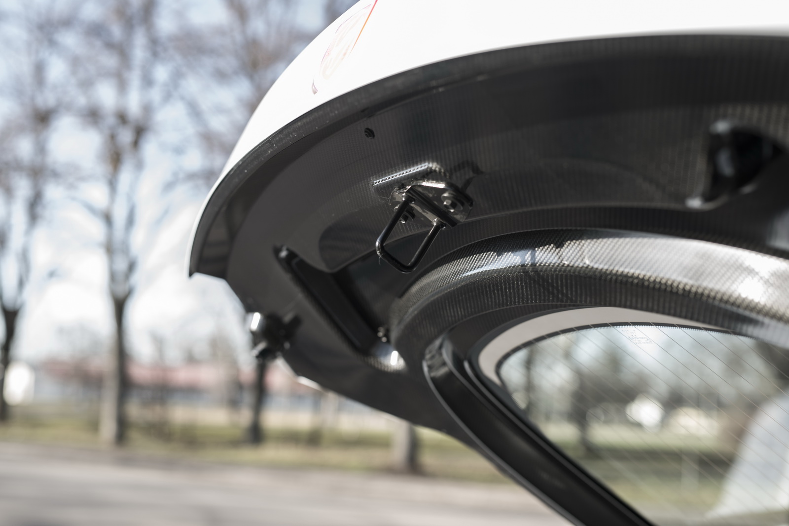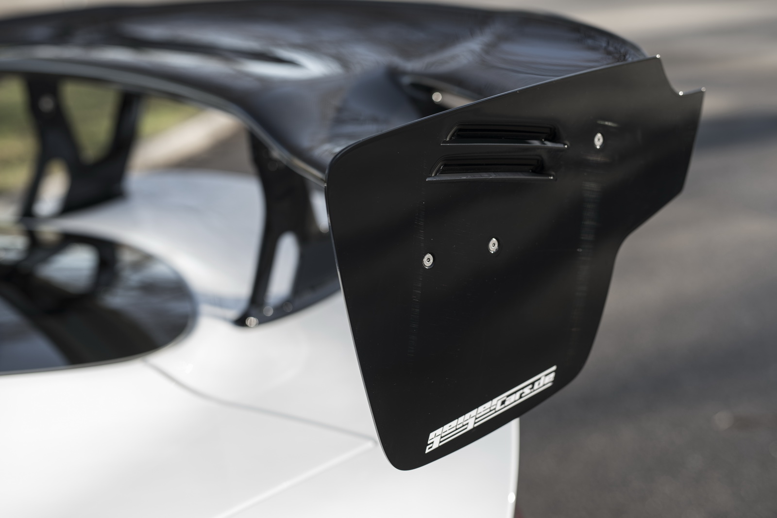 Equipped with adjustable aero parts, a 1.88-meter-wide race grade carbon-fiber rear wing with Gurney flap and lateral air guides, and a set of Kumho Ecsta V720-high-performance tires, the car can achieve a 285 km/h top speed.