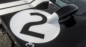Three different paint schemes will be offered, all with an Anniversary badge. The Bruce McLaren Edition is black with silver stripes, the Ken Miles blue with white stripes and the Dan Gurney mostly red with a number of white stripes. .