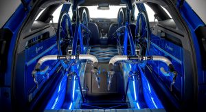 A retractable arm too is used for easy bike repair and maintenance, while a toolbox, bottle holder, water tank and front wheel holder were all integrated in the boot’s side lining. Its aero shape roof box can accommodate the riders’ helmets and shoes.
