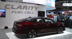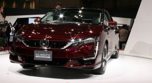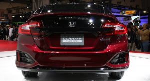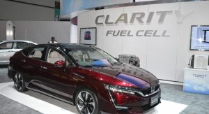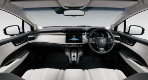 In case you forgot, the Clarity is powered by a fuel cell stack with an output of more than 100kW (134hp) and an electric motor which generates 174hp (177 PS). The fuel cell powertrain is comparable to a 3.5-liter V6 in size and it fits entirely under the hood, making room for a spacious cabin.
