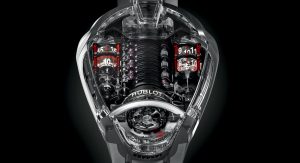 Apart from its sapphire parts, it includes 637 individual components and a suspended vertical tourbillon. The MP-05 ‘LaFerrari’s Sapphire is also special in the way it displays the time, ditching typical hands in favor of four distinct clear cylinders displaying the seconds, hours, minutes and power reserve.