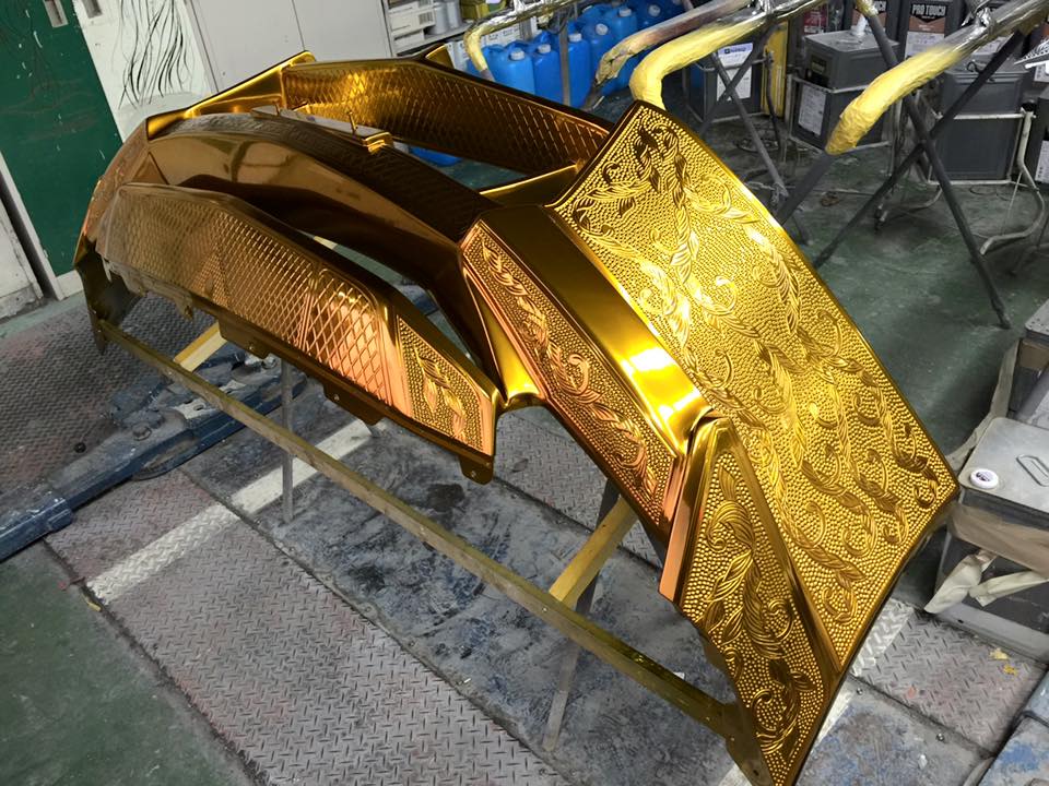 Those components were then painted in a chrome finish and then, sprayed gold.