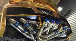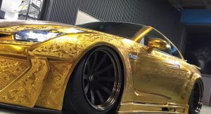 You’d might be surprised but this isn’t Kuhl’s first engraved GT-R, as the Japanese tuner already has a chrome variant of the Godzilla in its curriculum. This new version, though, comes with a gold spray finish over the chrome paint, a solution which makes it look amazingly complex…and heavy on the eye, at the same time. Of course, the intricate shapes and patterns on its body are meticulously carved out by expert engravers into the custom body panels. Talk about devil’s in the details.