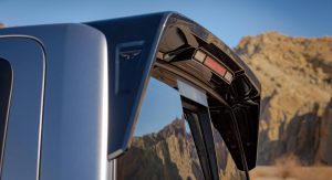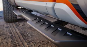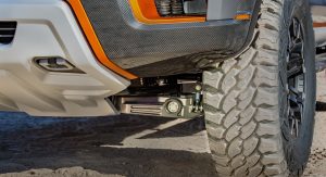 Under the hood lives the 5.0-litre V8 Cummins turbo diesel unit mated to a six-speed heavy-duty Aisin automatic gearbox. The new suspension setup involves in the front custom upper and lower control arms with performance ball joints and internal bypass reservoir coilover shocks with custom reservoir mounts and tie-rod extensions. In the rear custom internal bypass reservoir shocks with reservoir mounts were installed. A set of adjusted-length prototype axles with a custom sway bar, relocated sway bar brackets, rear lift blocks and U-bolts and hydraulic pressurized bump stops complete the overhaul of the Titan Warrior’s suspension.