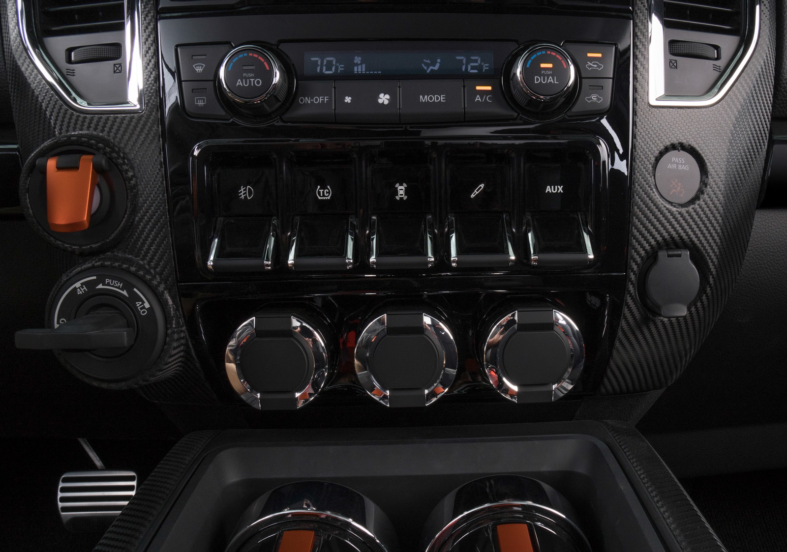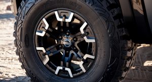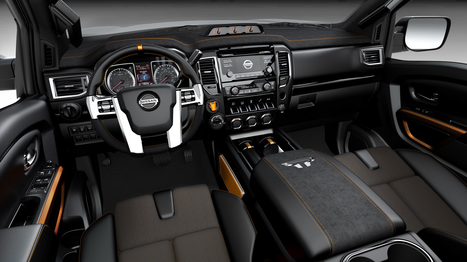 Penned by Nissan Design America (NDA), the Titan Warrior has a more powerful presence than the regular model, with the ride height raised nearly three inches, from 78.7 inches to 81.5 inches, in order to fit a set of 37-inch off-road tires mounted on 18×9.5-inch wheels which feature a machined aluminum surface with a dark-matte finish.