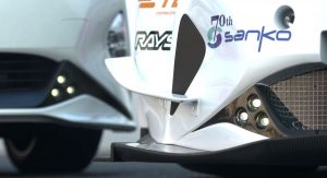 Visually, the new GT300 car draws on the road model in its design with the same spaceship-like headlights and intriguingly shaped front grille and air intakes. The factory taillights have also been retained. Other than those elements, the track-only model is adorned with bespoke body panels and aerodynamic aids, including a massive rear wing and rear diffuser.