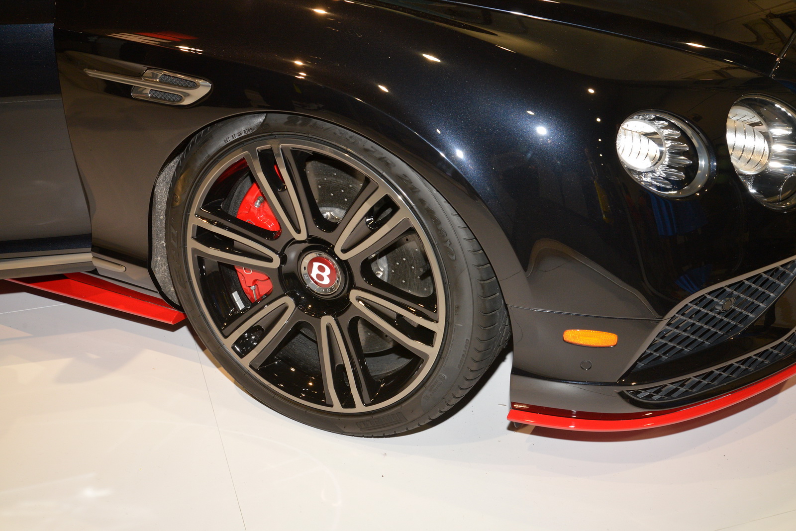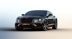 On the outside, the car looks the same as any of Crewe’s grand tourers, even though the Onyx hue, complemented by the red accents, was carefully applied to mirror Monster’s distinctive color scheme. Nonetheless, the combo looks stellar, and we wouldn’t mind seeing it on other Bentley-branded products.