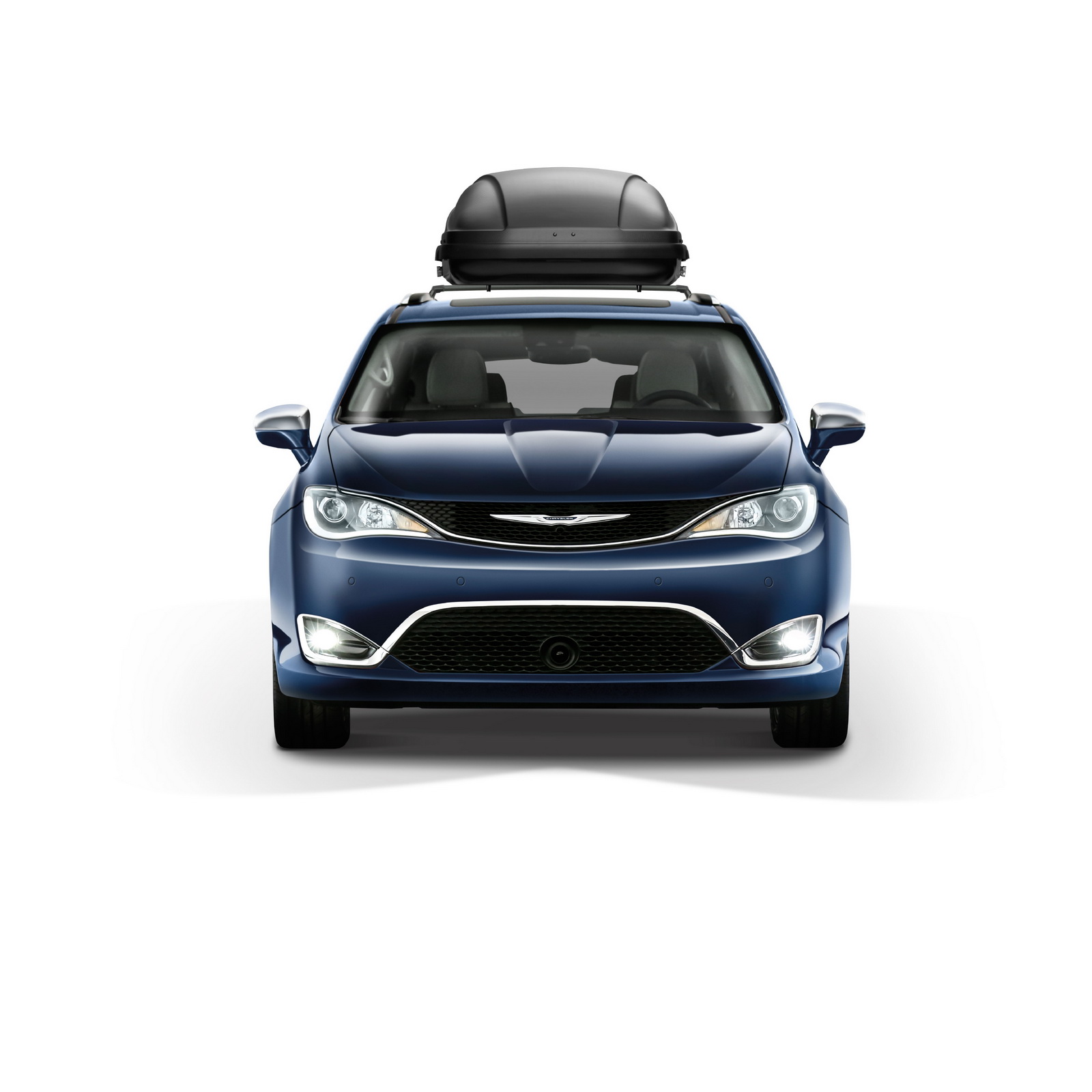 Besides the options offered by Chrysler, the Mopar Custom Shop adds its own parts that include a flip-down overhead DVD player, upgraded for the Pacifica, Stow ‘n Go cargo bin to stash gear or fill with ice and beverages for long trips, pet kennel to keep animals secure on long trips and a foldable soft-sided cooler, which can go in the Stow ‘n Go storage area.