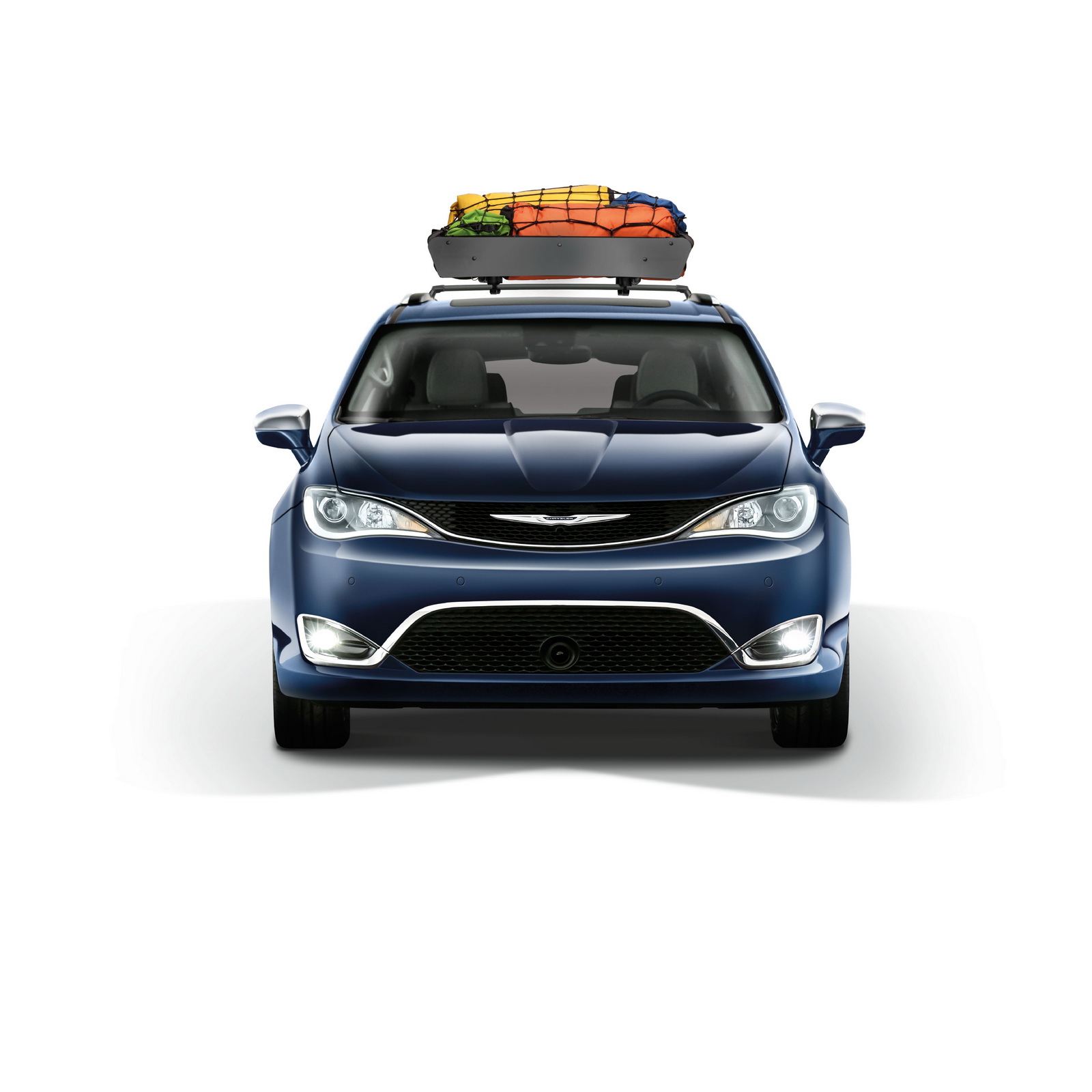 Other Mopar goods include all-weather mats, cargo liner, cargo tote, first-aid kit, roadside safety kit, spare tire kit, Chrysler-branded license plate frame, bodyside molding and front air deflector.