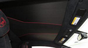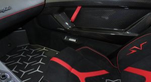 The cabin has been optioned to perfectly complement the outside and therefore includes black leather and suede along with bright red accents, piping and stitching. Gloss carbon can also be found on the instrument panel, doors and center console.