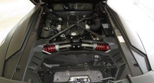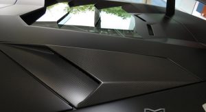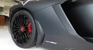 Painted matte black (Nero Nemesis), it has been optioned with the large SV logos on the rear wheel arches as well as the standard gloss black multi-spoke wheels with red centerlocks and red brake calipers. As with all other Aventador SV models, there are then a number of matte carbon elements, particularly the rear diffuser, rear wing, air intakes and wing mirrors.