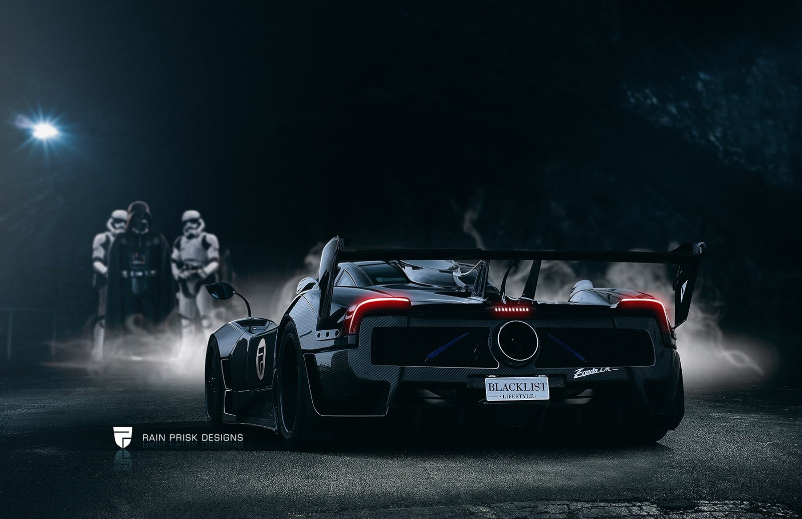 The car is the Pagani Zonda 760 LM, quite possibly the most expensive and fastest road-legal Zonda ever produced. Thanks to its incredibly outlandish design, particularly the towering rear wing and roof scoop, this would be the perfect car for Darth Vader.