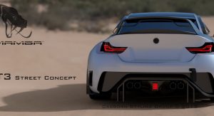 The impressive-looking rendering of this vehicle may carry GT3 updates, but it remains road-legal, even if most will have a hard time trying to figure it out on which car it was based on.