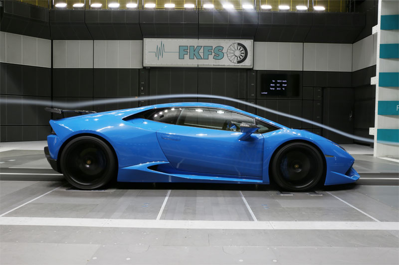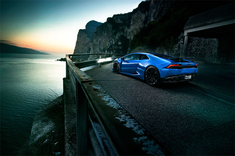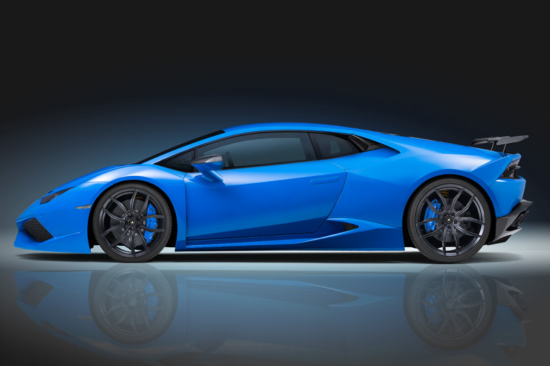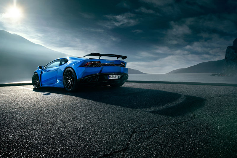 Width has increased by 6cm (2.3in) at the front and 12cm (4.7in) at the rear and the baby Lambo now sits 3.3cm (1.3in) closer to the road, thanks to the lowering springs. It also wears 20-inch front and 21-inch rear custom rims wrapped in 245/30 and 325/25 Pirelli P Zero tires.