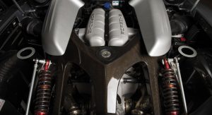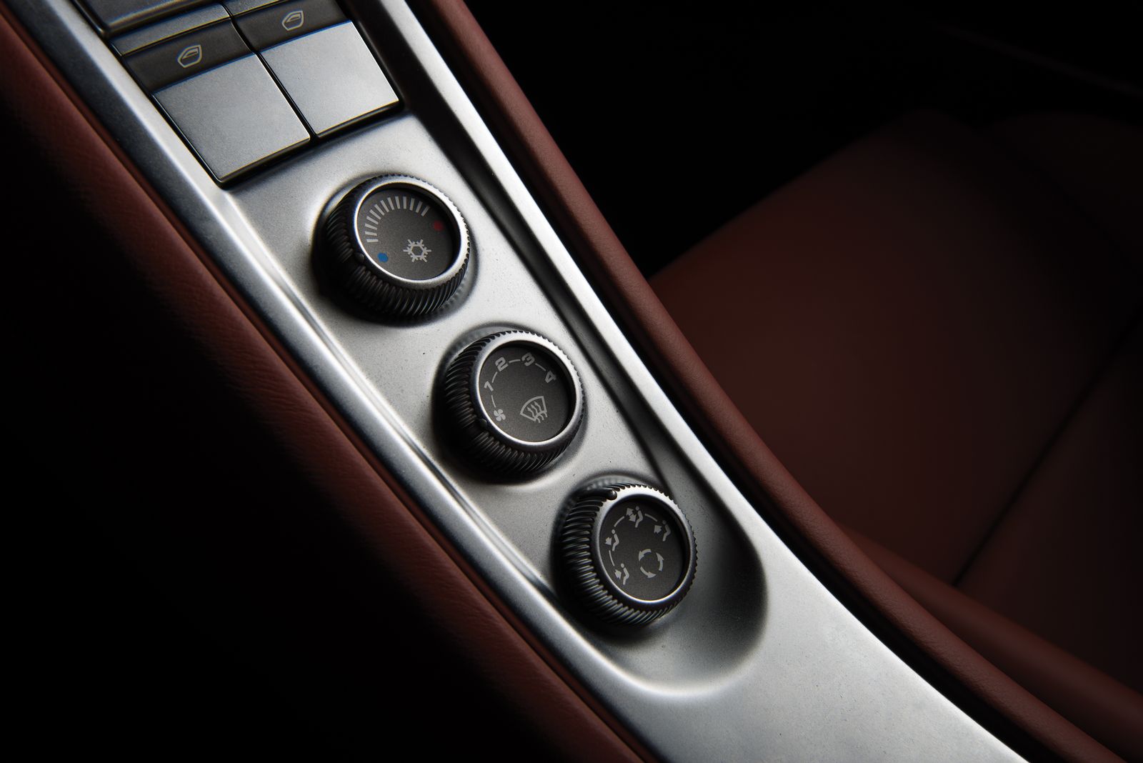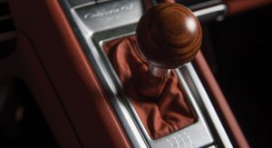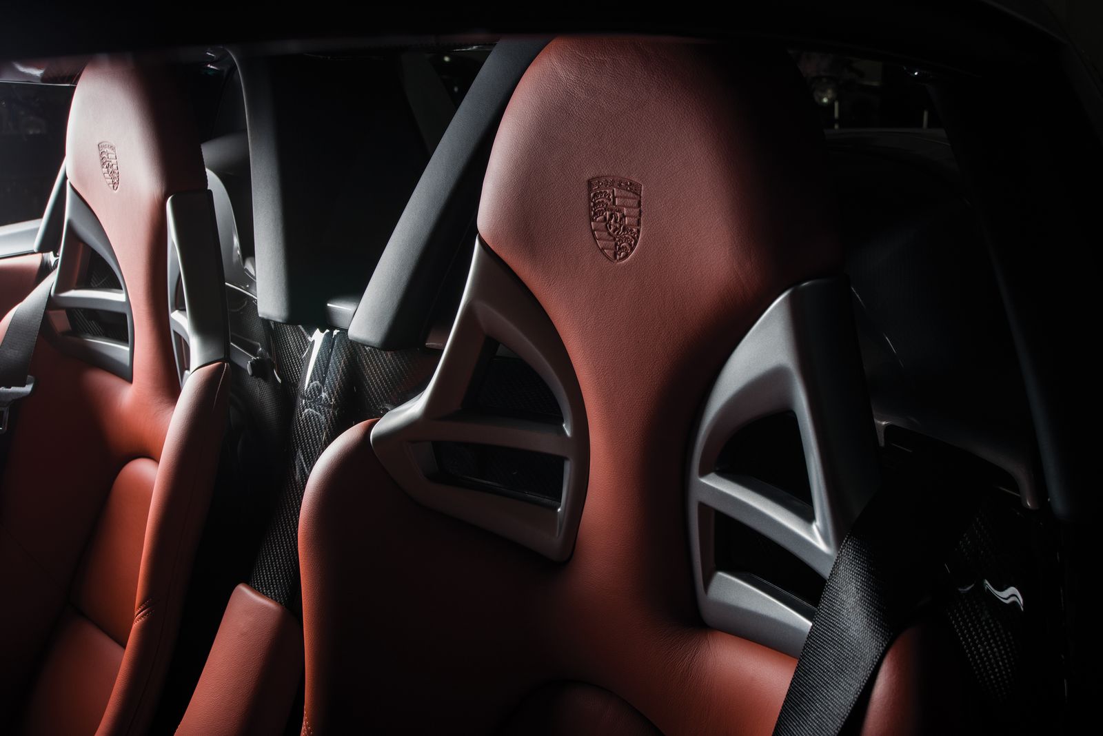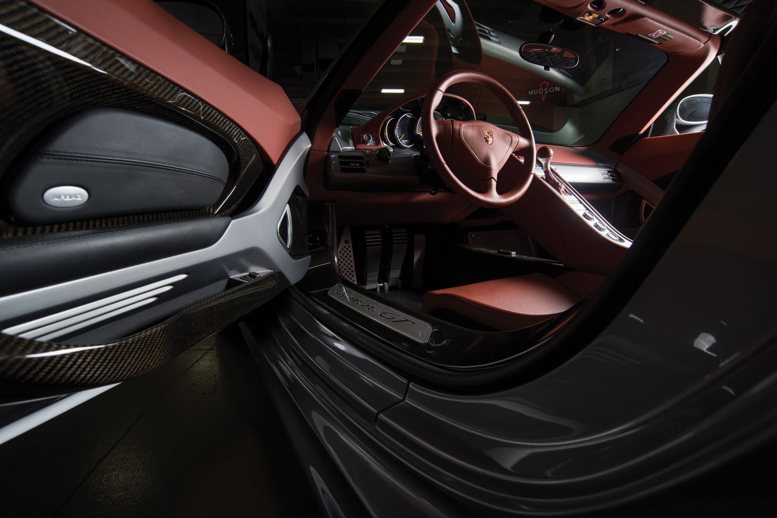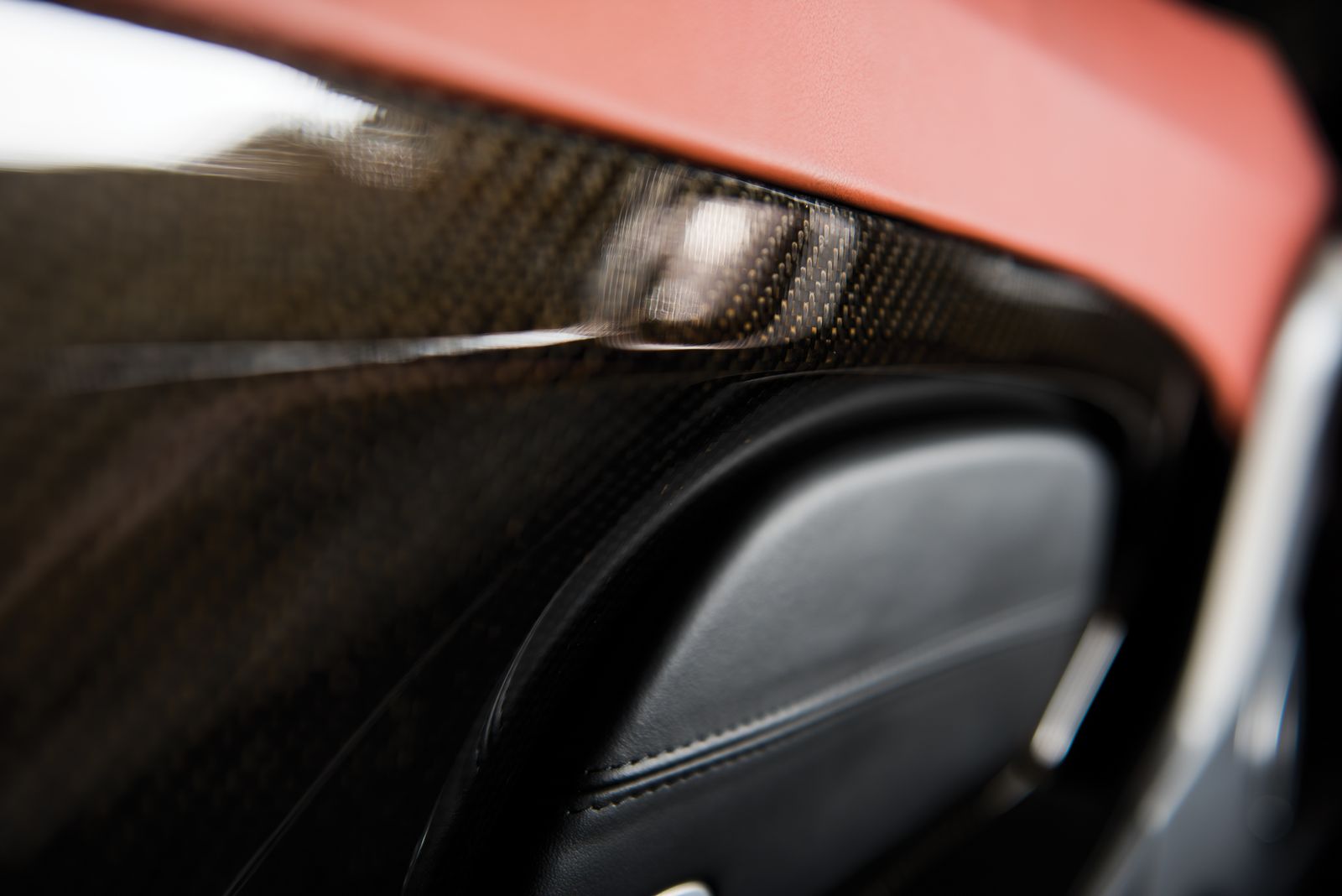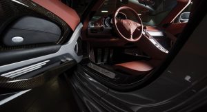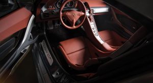 The interior of the car is just as stunning as the silver exterior with it combining dark red leather across the seats, dashboard, transmission tunnel and steering wheel. There are also a number of carbon fiber components and of course, the iconic wooden shift knob.