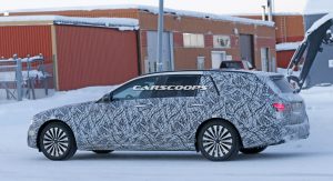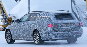 The prototype appears to have a marginally more curved roofline and a slightly steeper rear window than today’s car, which gives it a sleeker profile, likely at the expense of rear boot volume that might be a tad smaller than the current E-Class Wagon’s 695 liter capacity with the rear seats up, and up to 1,950 liters when folded down, but it should remain at the top of its class.