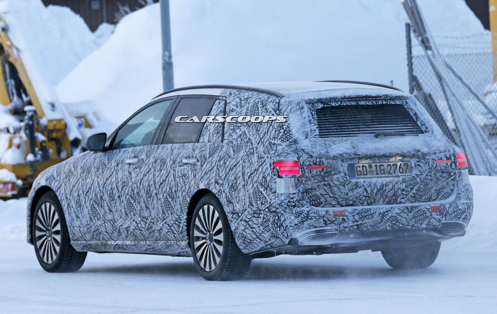The prototype appears to have a marginally more curved roofline and a slightly steeper rear window than today’s car, which gives it a sleeker profile, likely at the expense of rear boot volume that might be a tad smaller than the current E-Class Wagon’s 695 liter capacity with the rear seats up, and up to 1,950 liters when folded down, but it should remain at the top of its class.