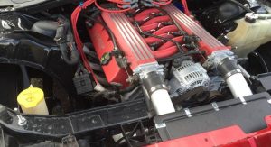 David Waterworth competes with the car in the British Drift Championship and mated alongside the Viper engine is a Borg-Warner T-56 six-speed manual transmission. The engine itself has been left untouched and delivers around 500 hp and 525 lb-ft of torque.