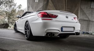 This particular package comes courtesy of small firm Noelle Motors. Developed for the German coupe or, as is the case here, convertible, the Stage 3 performance kit sees the installation of custom exhaust downpipes, free-flowing sport metal catalytic converters and an optimized ECU. These relatively minor changes see horsepower soar to 766 hp and torque to a massive 880 Nm (650 lb-ft).