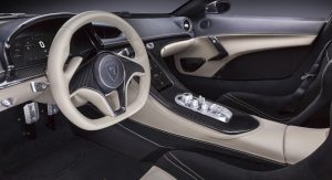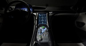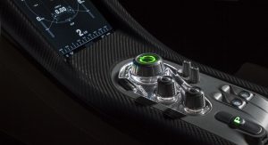 In the interior, it lost the study’s twin screens for the mirrors on either side of the fully digital instrument panel, while getting a new slanted center console that hosts a large touch-screen for the infotainment system and the vehicle’s secondary functions. The Concept_One’s dynamics and powertrain functions such as the Rimac All Wheel Torque Vectoring System are controlled through physical buttons, machined from billet aluminum.