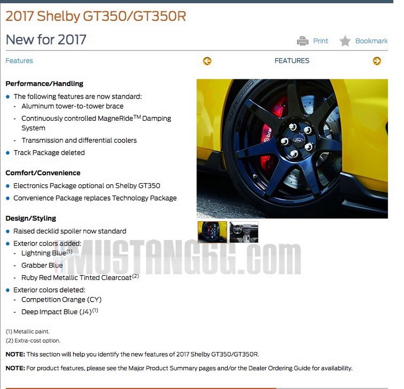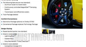 The guys over at mustang6g.com came across what appears to be a list with all the changes scheduled for the MY2017 Mustang GT350 and GT350R.