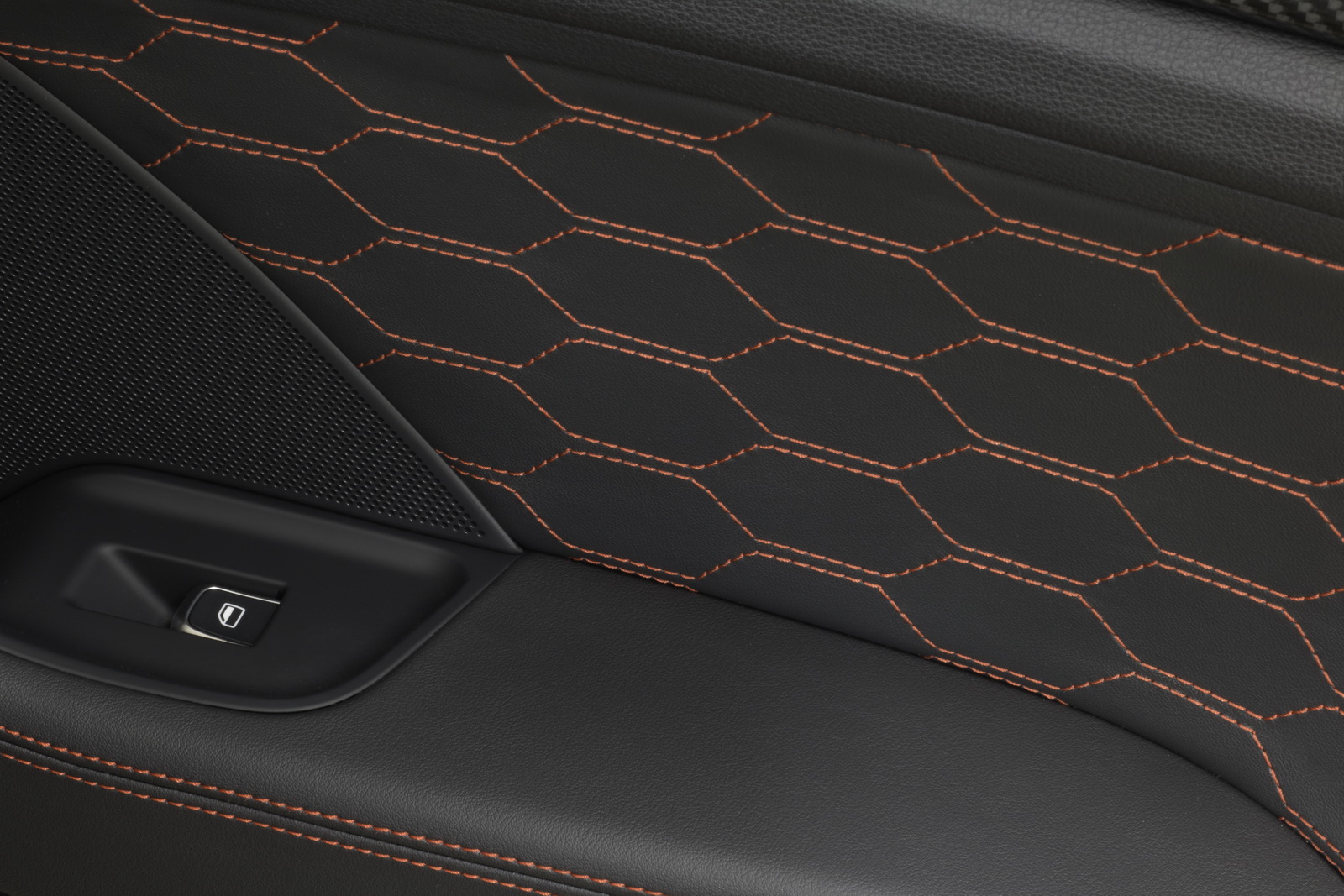 The German tuner also made the cabin a bit more special with leather and red honeycomb stitching on the door cards, seats, armrest and on the center console.