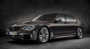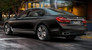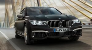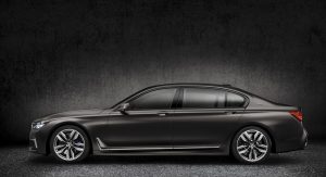 While the new Alpina B7 has a twin-turbo V8, the BMW-branded opposition has a twin-turbo 6.6-liter V12 that pumps out 592 hp at 5,500 rpm and 590 lb-ft of torque at 1,500 rpm. Coupled to that massive engine is an 8-speed automatic transmission powering all four wheels and resulting in a 0-100 km/h (62 mph) sprint time of just 3.9 seconds as well as an electronically limited 250 km/h (155 mph) top speed.