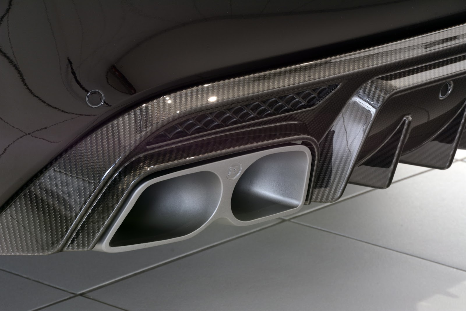 There’s a carbon fiber aerodynamic and styling kit available in both matte and mirror-polished sealed surfaces that include a front apron, rear spoiler, rear diffuser and mirror caps, with Brabus also offering plenty of interior customization options such as unique upholstery and aluminum trims and accents.