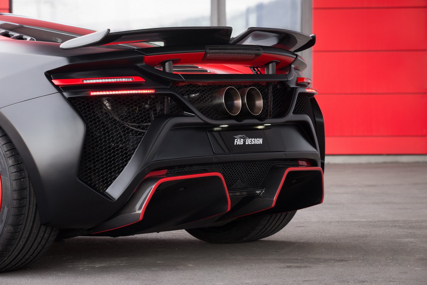The 3.8-liter twin-turbo V8 engine, found on the rest of the McLaren lineup, has been massaged to produce an extra 32 PS (32HP) in this case, to a total of 682 PS (672 HP). FAB Design says that the upgrades are available for both the 650S Coupe and Spider and for their predecessors too, the MP4-12C and 12C Spider.