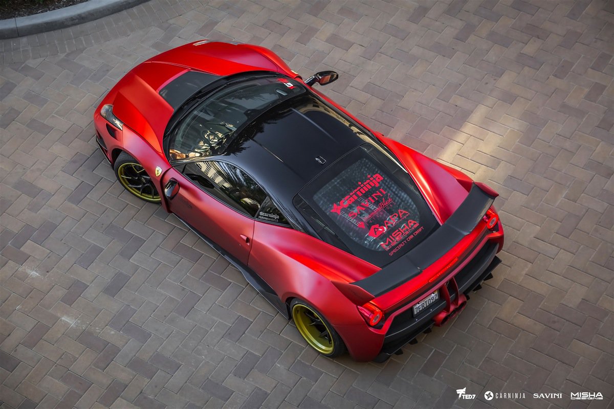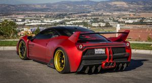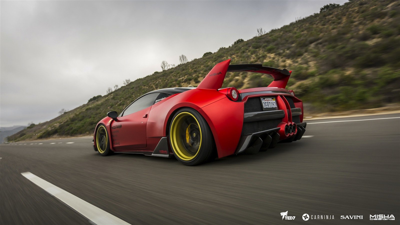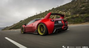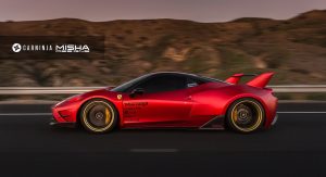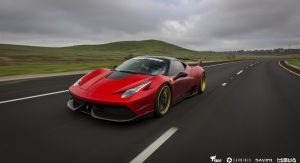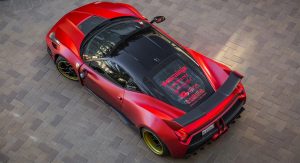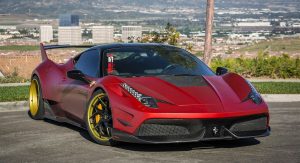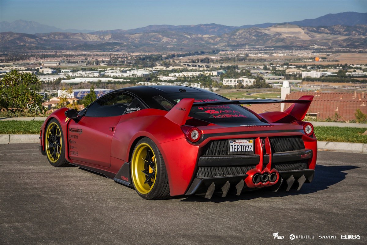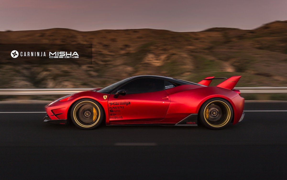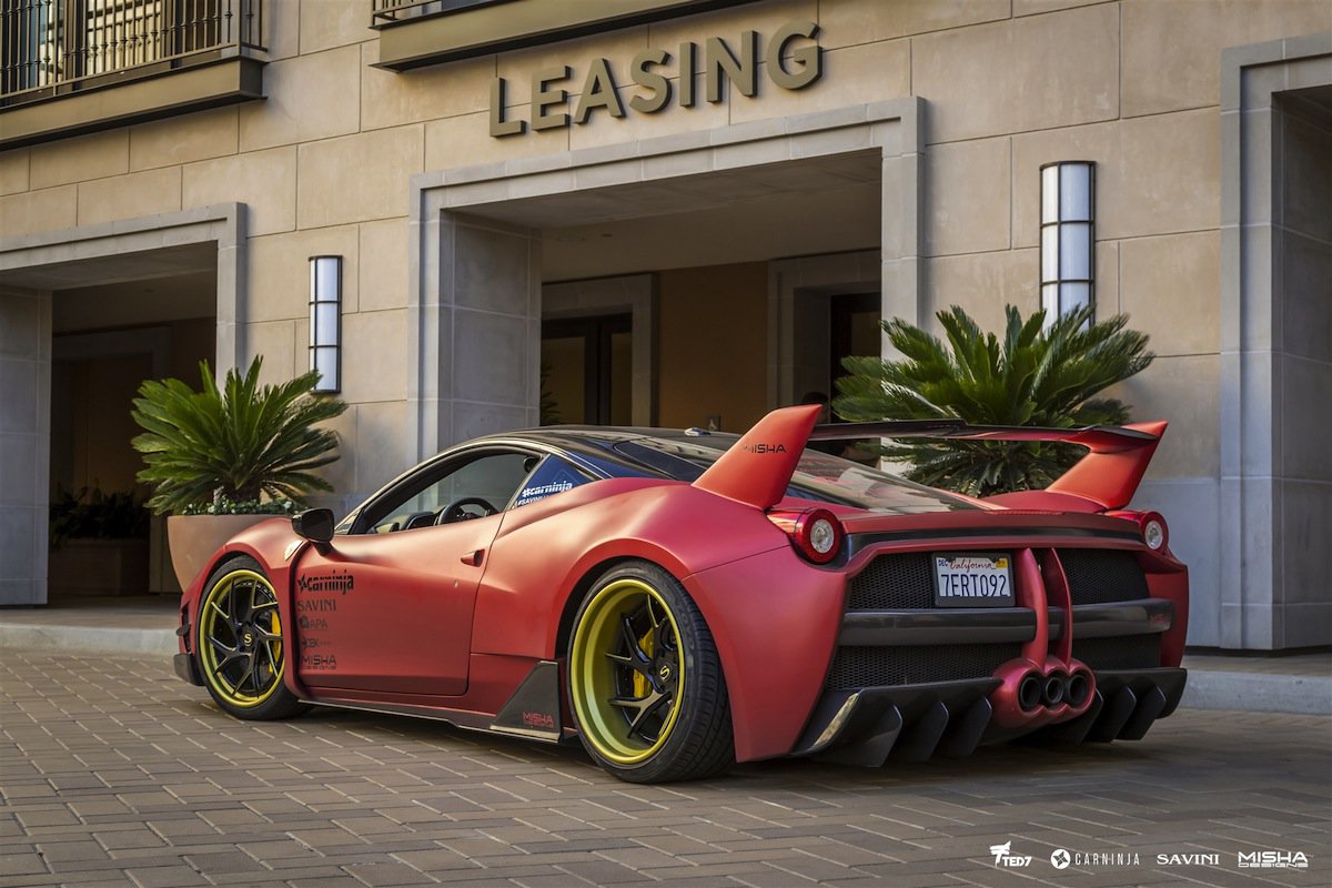 Misha Designs left the 458’s howling 4.5-liter V8, focusing instead on styling. Its widebody kit transforms the Ferrari into a much more aggressive looker, with seems almost as a smaller version of a track-only version special like the FXX K.