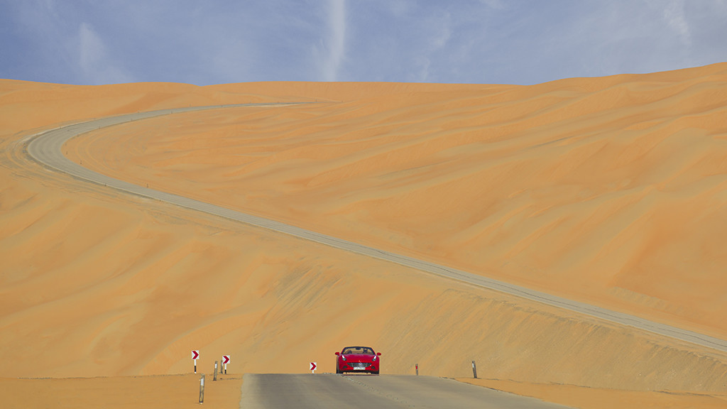 Filmed in the deserts surrounding the Liwa Oasis, home to some of the highest sand dunes in the world, it depicts two California Ts navigating the terrain of the mystical “Rub’ al Khali” (“Empty Quarter”).