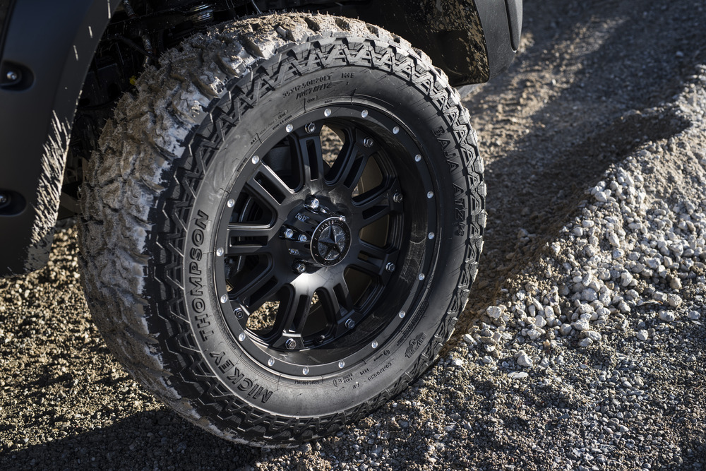 Fitting the truck with chunky 35×12,5R20 tires fitted to 9×20-inch alloys, seemed to do the trick, although the 100mm increased ride height made it even more imposing. The track width was also increased by 36mm. Just imagine meeting this thing on a narrow one-way street.